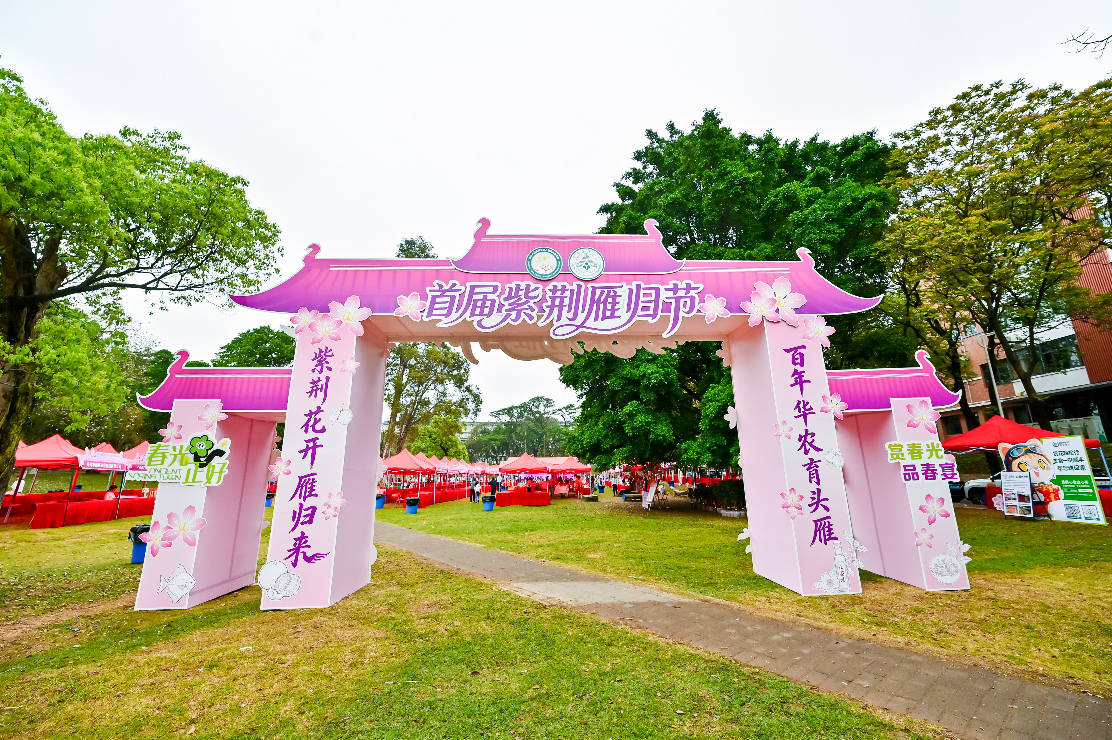春风送暖,紫荆盛放。2026年3月21日,华南农业大学首届“紫荆雁归节”暨乡村产业振兴系列活动在华南农业大学教三大草坪隆重举行。